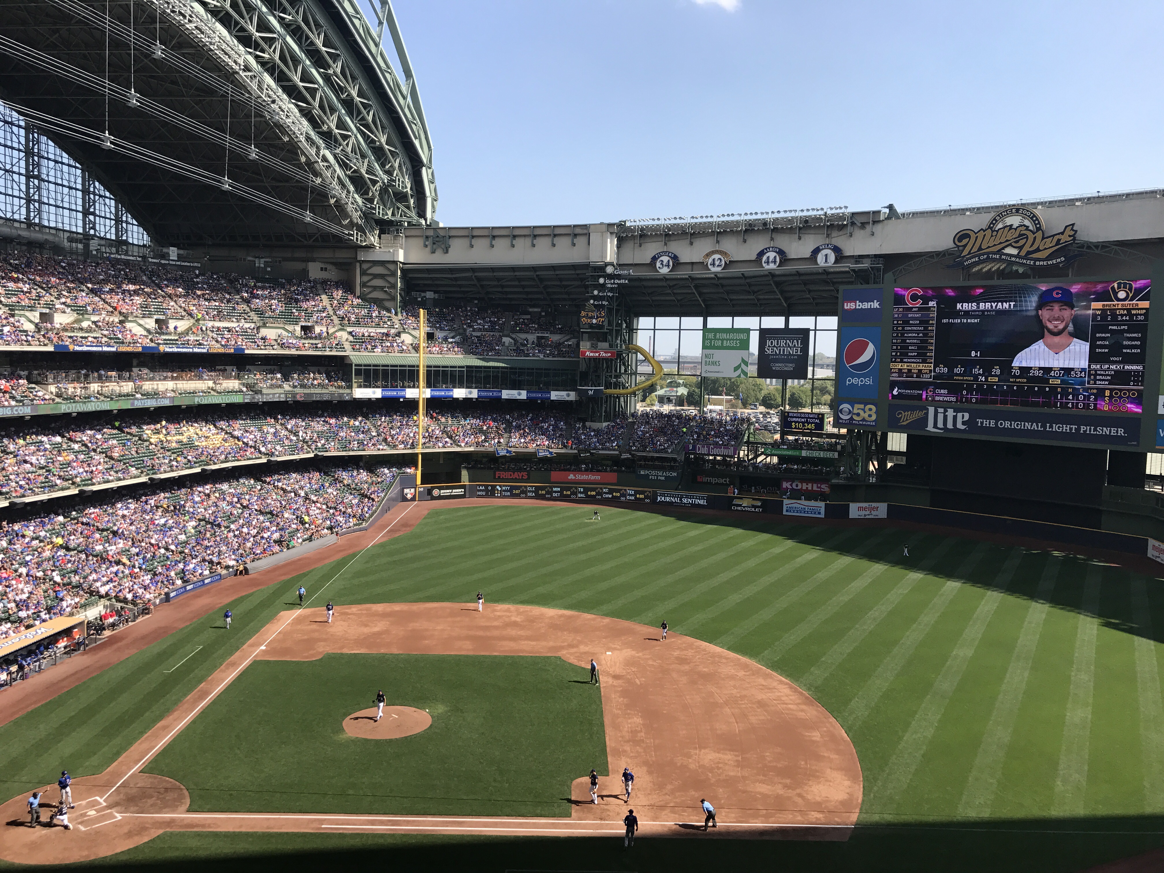 This stadium is beautiful, I really like it here. It’s so hot outside that I kinda wish they closed the dome. I gotta look at the food & the merchandise still, and I’m wondering if their is some old memorabilia too. Some of that will have to wait till tomorrow, because right now, I’m enjoying ⚾️ with playoff implications
